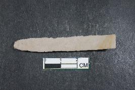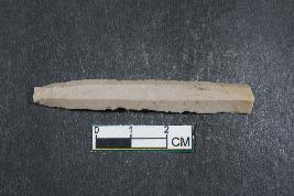 | Description / विवरण | Blade with two dorsal ridges having smooth surface. Shorter fragment along with one dorsal ridge has length equivalent to 1.1 cm. |