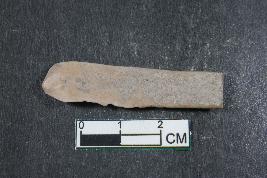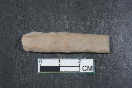 | Description / विवरण | Fragment of a blade with two dorsal ridges and a bulb of percussion on ventral side having smooth surface. |