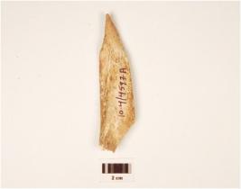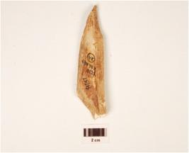 | Description / विवरण | A fragment of bone point pointed top, partly broken, channel inside, proper edges, rough surface and off white in colour. |