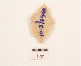 | Description / विवरण | A flake made on chert, diffused bulb on ventral side and use wear marks on edges. |