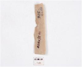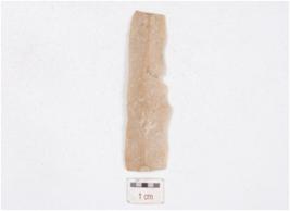 | Description / विवरण | A blade made on chert, mid ridge on dorsal side, diffused bulb on ventral side and irregular retouch marks on edges. |