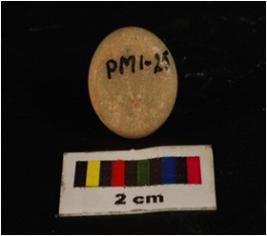 | Description / विवरण | Part of ear ornament, circular in shape, convex and polished surface with flat base. |