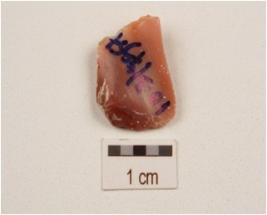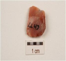 | Description / विवरण | A flake made on chert, use wear marks on edges and bulb on ventral. |