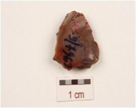 | Description / विवरण | A flake made on chert with flake scars and use wear marks on edges. |