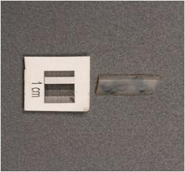 | Description / विवरण | Chalcedony parallel sided blade fragment with a double ridges, trapezoidal section, used wear mark on cutting edges. |