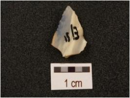 | Description / विवरण | A flake made on chert with use wear marks on edges. |