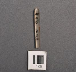 | Description / विवरण | Parallel sided chalcedony blade with two ridges on dorsal side. Defused bulb on ventral side, broken along at distal end. Trapezoidal in section and use wear marks on cutting edges. |