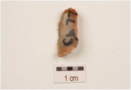 | Description / विवरण | A flake made on chert, diffused bulb on ventral side and use wear marks on edges. |