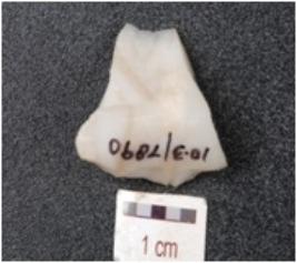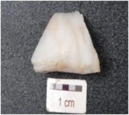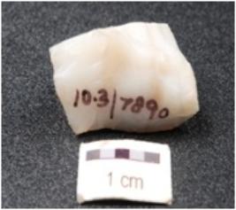 | Description / विवरण | Core made on chalcedony with blade scars and flake scars on the surface and user marks on the working edges. |