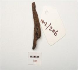 | Description / विवरण | Fragment of iron nail, one end is pointed, rough surface and rusted. |