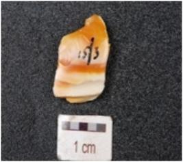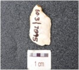 | Description / विवरण | Flake made on chert, prepared platfrom, prominent bulb and flake scars on the surface. |