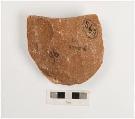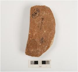 | Description / विवरण | A handaxe made on quartzite pebble by block on block technique, flake scars on both sides, sharp cutting edges on both sides and broken along one end. |