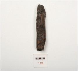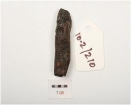 | Description / विवरण | Fragment of iron nail, broken end, rough surface and chemically treated. |