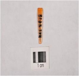 | Description / विवरण | Microlith blade with improminent double ridge on dorsal, trapezoidal in section and raw material given heat treatment. |