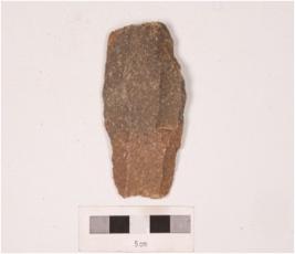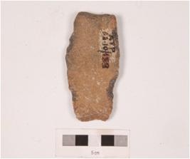 | Description / विवरण | A side sraper, made on end struck flake, diffused bulb on ventral and irregular retouches at cutting edge. |