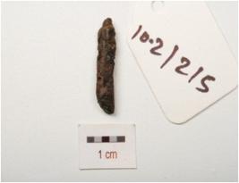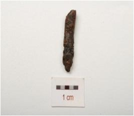 | Description / विवरण | Fragment of iron nail, pointed one end, rough surface and chemically treated. |
