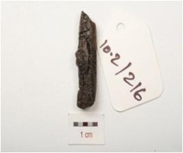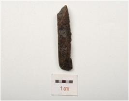 | Description / विवरण | Fragment of iron nail, broken on both ends, rough surface and chemically treated surface. |