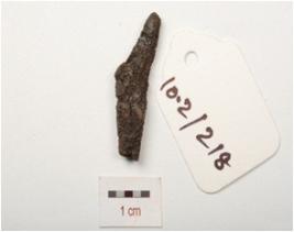| Description / विवरण | Fragment of iron nail, pointed one end, rough surface and chemically treated. |