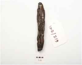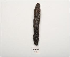 | Description / विवरण | Fragment of iron nail, broken ends, rough surface and chemically treated. |