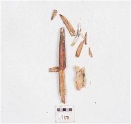 | Description / विवरण | Fragment of a point made on charred bone and highly polished surface. |