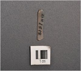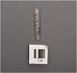 | Description / विवरण | Parallel sided chalcedony blade with two ridges on dorsal side, defused bulb with irrailure on ventral side, partly broken along at distal end. Trapezoidal in section and use wear marks on cutting edges. |