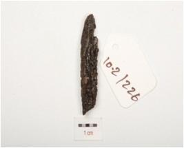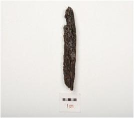 | Description / विवरण | Fragment of iron nail, broken end rough surface and chemically treated. |