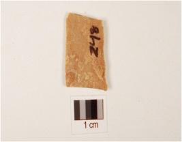 | Description / विवरण | A fragment of chert blade, trapezoidal in cross section and use wear marks along the cutting edge. |