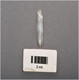 | Description / विवरण | Parallel sided microlith blade with mid ridge on dorsal, triangular in section and usewear marks on cutting edge. |