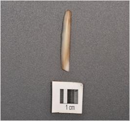 | Description / विवरण | Parallel sided microlith blade made on chalcedony with doulbe ridge on dorsal, diffused bulb on ventral and trapezoidal section. Broken distal end. |