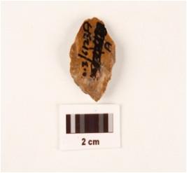 | Description / विवरण | A side scraper made of chert, prepared platform, used wear marks on cutting edges and flake scars on dorsal surface. |