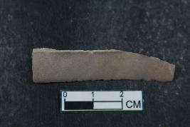 | Description / विवरण | Fragment of blade with one dorsal ridge and smooth surface. |