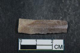 | Description / विवरण | Fragment of blade with two dorsal ridges and smooth surface. |