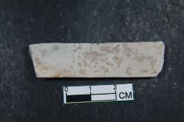 | Description / विवरण | Fragment of blade with two dorsal ridges and smooth surface. |
