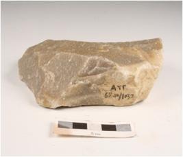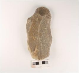 | Description / विवरण | A unifacial side scraper on a end struck flake with flake scars on dorsal, prepared platform, bulb on ventral, irregulr retouches on right cutting edge and cortex on proximal end. |