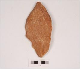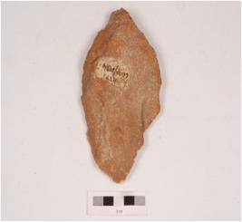 | Description / विवरण | A unifacial handaxe made on quartzite with flake scars on the dorsal sharp cutting edges and cortex on the dorsal side. |