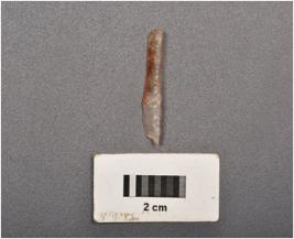 | Description / विवरण | Microlith blade made on chalcedony with blunted mid ridge on dorsal, triangular in section and use wear marks on cutting edges. |