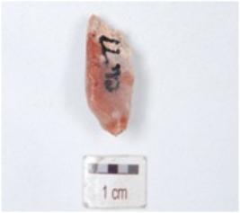 | Description / विवरण | Blade made on chert, prepared on platform, diffused platform and user marks on the working edges. |