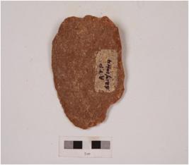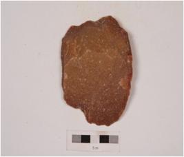 | Description / विवरण | An end scraper made on quartzite side struck flake with flake scars on the side and cortex on the other side with irregularly retouched edges. |