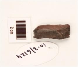 | Description / विवरण | A side scraper made of chert with ridge on dorsal surface, used wear marks on cutting edges and prominent bulb on ventral side. |