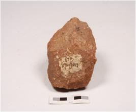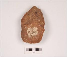 | Description / विवरण | A handaxe made on quartzite with flake scars on both the surface and sharp cutting edges. |