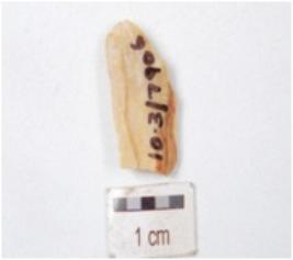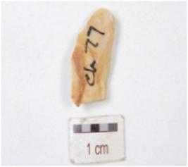 | Description / विवरण | Blade made on chert, ridges on the dorsal side, bulb is absent and user marks on the working edges. |