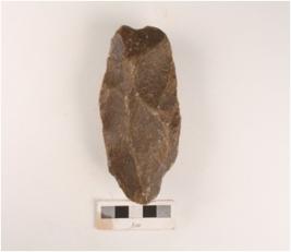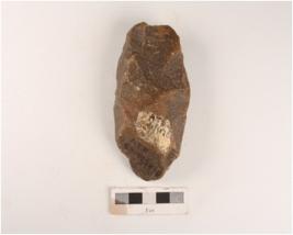 | Description / विवरण | Handaxe with prepared platform on posterior end and flake scars on both surface. |