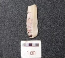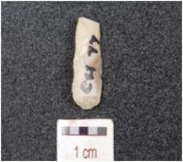 | Description / विवरण | Blade made on chert, mid-ridge on dorsal, user marks on the working edges and triangular section. |