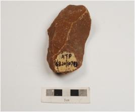 | Description / विवरण | A end scraper made on quartzite end struck flake with flake scars on both sides, retouched edges and prepared platform. |