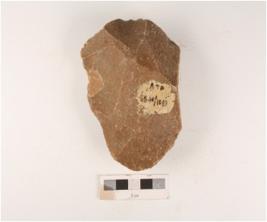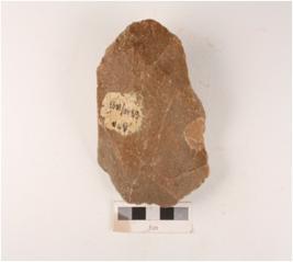 | Description / विवरण | A quartzite miniature handaxe, made on end struck flake, prepared platform flake scars on both side and edges are sharpened by soft hammer technique. |