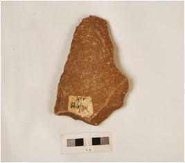 | Description / विवरण | A scraper made on quartzite pebble, ridge on dorsal, irregular edges, soft hammer technique is used. |
