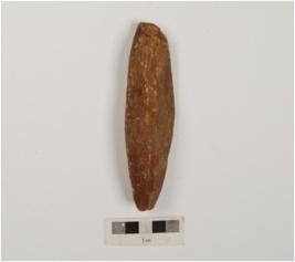 | Description / विवरण | A core made on quartzite cylindrical in shape with four blade scars. |