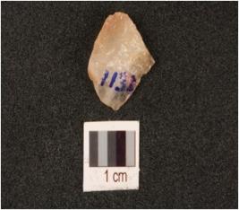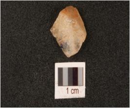 | Description / विवरण | A side scraper made on quartz, smooth surface working edge and prominent bulb. |