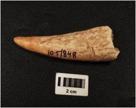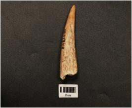| Description / विवरण | Point of antler horn with smooth surface and polished towards pointed end, broad at other end and light brown in colour. |