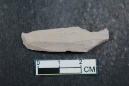 | Description / विवरण | A fragment of blade having two dorsal ridges and smooth surface. |